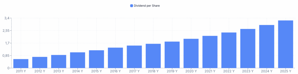 Die Microsoft-Aktie überzeugt durch eine solide Dividendenpolitik: 19 Jahre kontinuierliche Steigerungen, eine attraktive Rendite von 1,2% und eine niedrige Ausschüttungsquote von 27%.